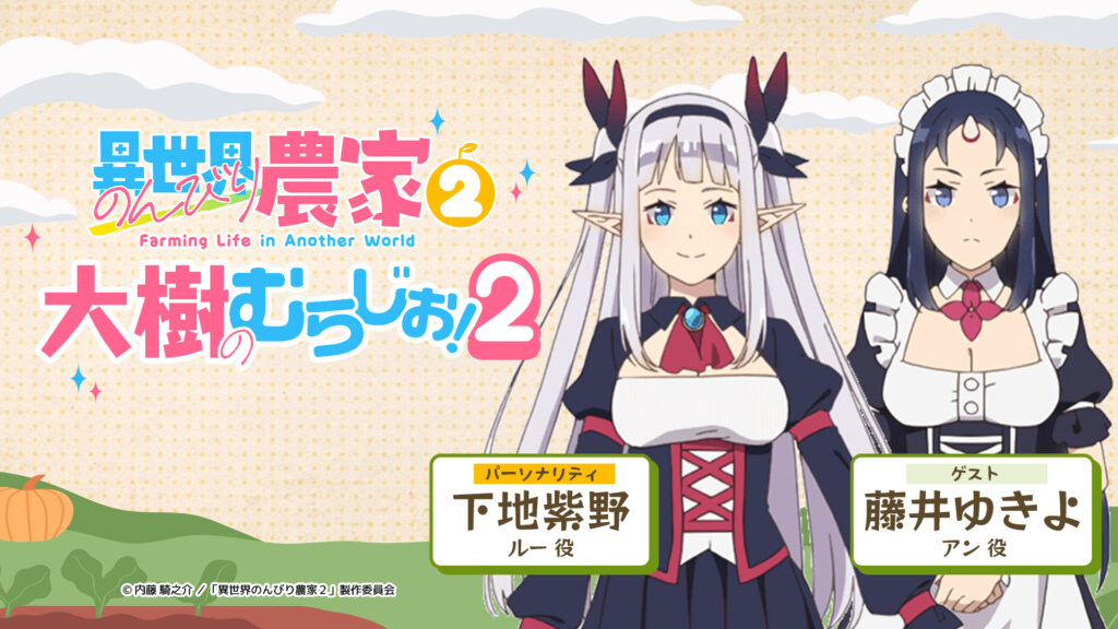 異世界のんびり農家 2「大樹のむらじお!2」第3回配信のゲストが決定!パーソナリティはルー役 #下地紫野 さん!第3回配信のゲストはアン役 #藤井ゆきよ さんです!番組宛てのメールも募集中です!